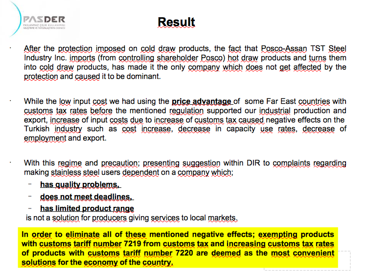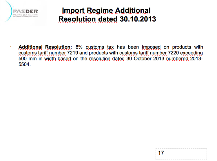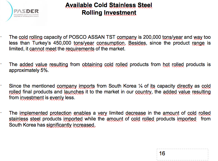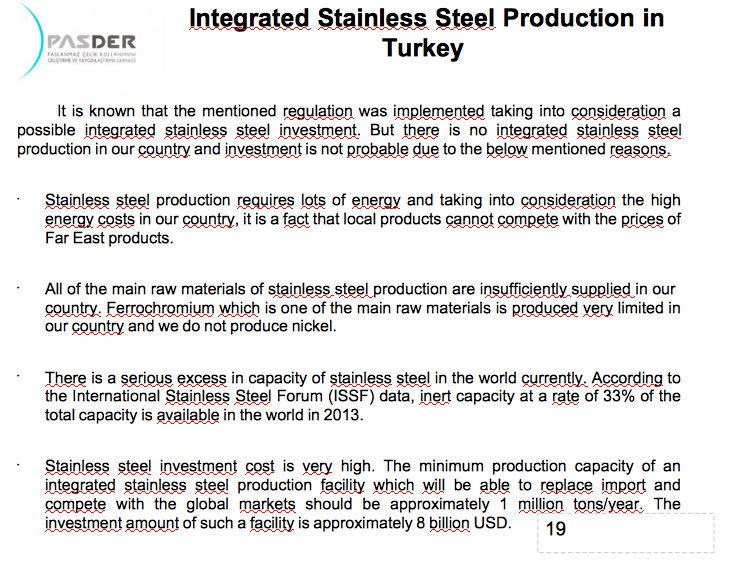 • We need first of all ‘’integrated stainless steel production’’ instead of re-rolling. For this theme please take care the message of our president for 2017