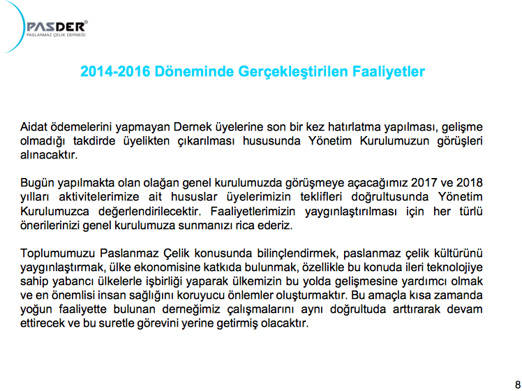 © Copyright 2018 PASDER Paslanmaz Çelik Kullanımını Geliştirme ve Yaygınlaştırma Derneği